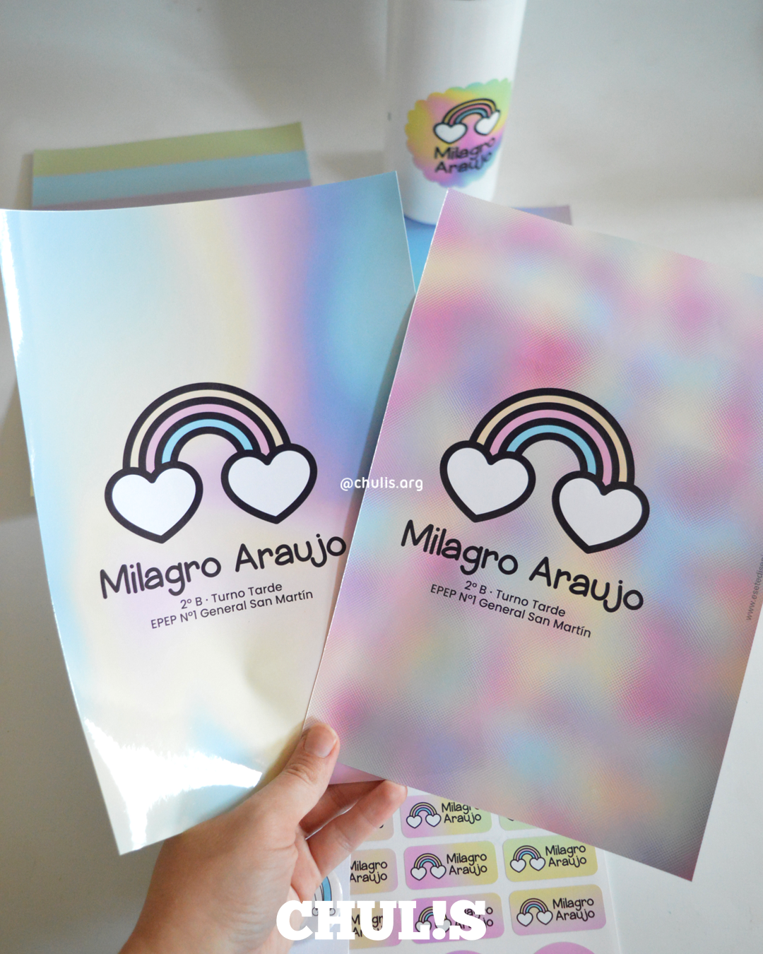 No es una simple impresión adhesiva, el laminado en calor, le otorga protección al roce, por lo que tendrás el cuaderno intacto durante su uso.