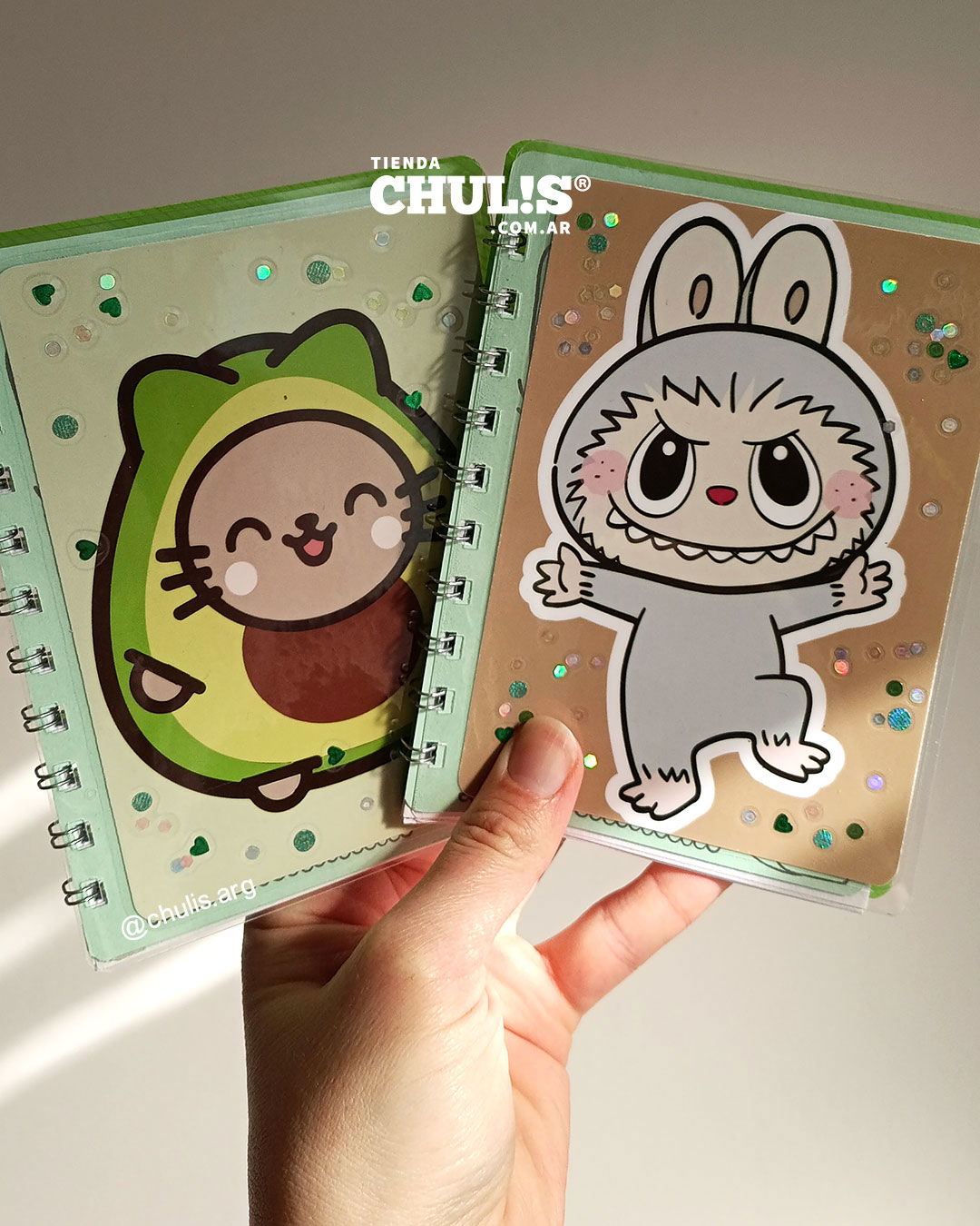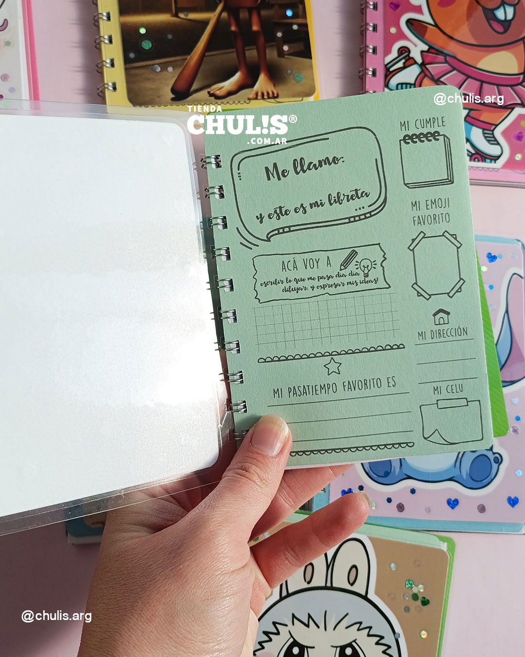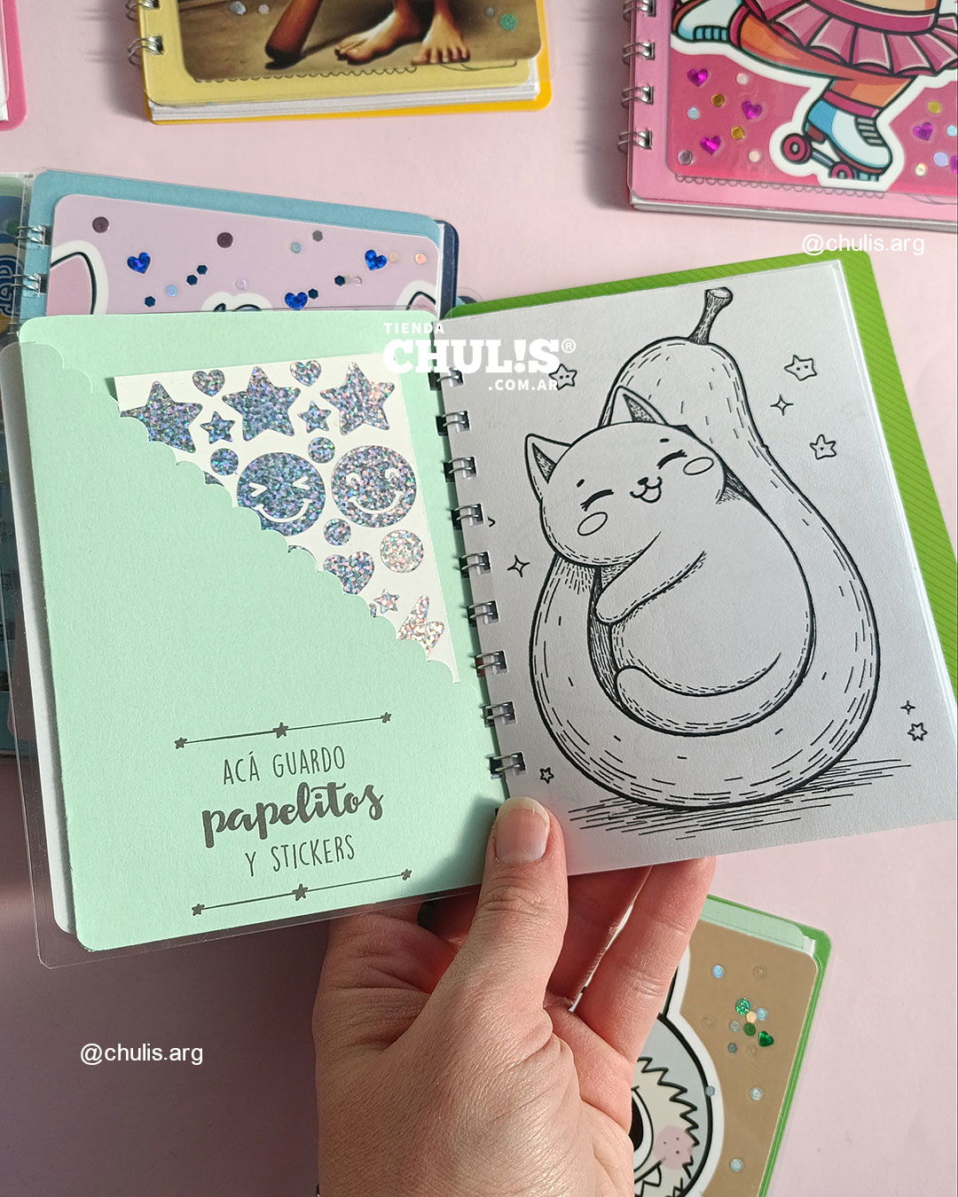 💜 Hoja bolsillo como carátula para completar con datos; y al dorso guardar papelitos y stickers