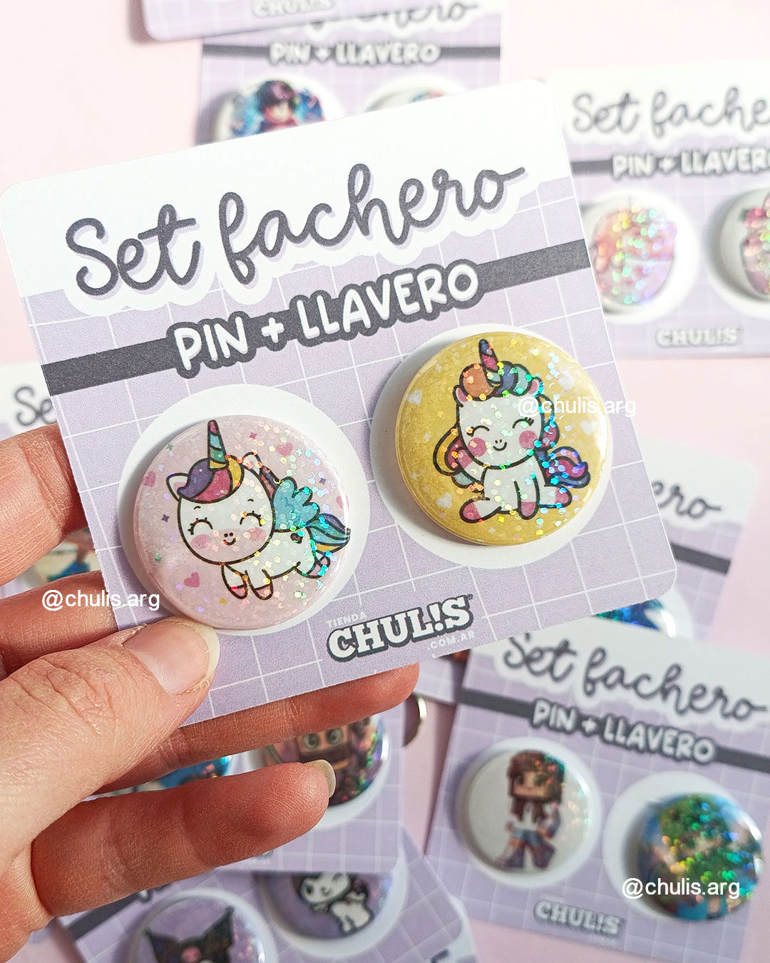 Ambos accesorios tienen destellos holográficos que los hacen brillar en cada movimiento 🌈💫