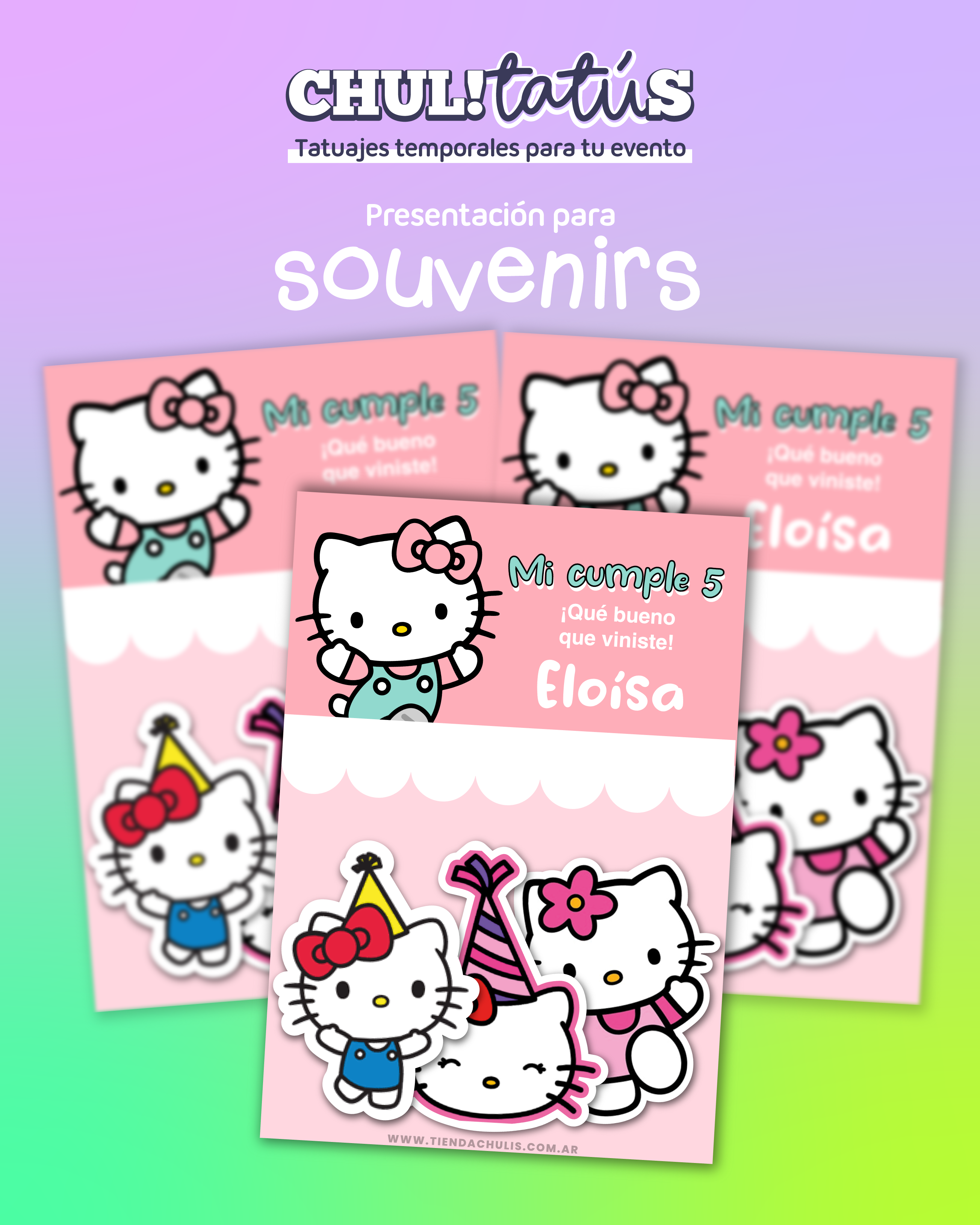 Cada paquetito contiene 3 tatuajes de personajes/escudos de 4x4 cm aprox; recortados, entregados en packaging individual, tamaño 7x10 cm, con diseño alusivo a tu evento y con bolsita de polipropileno sellada.