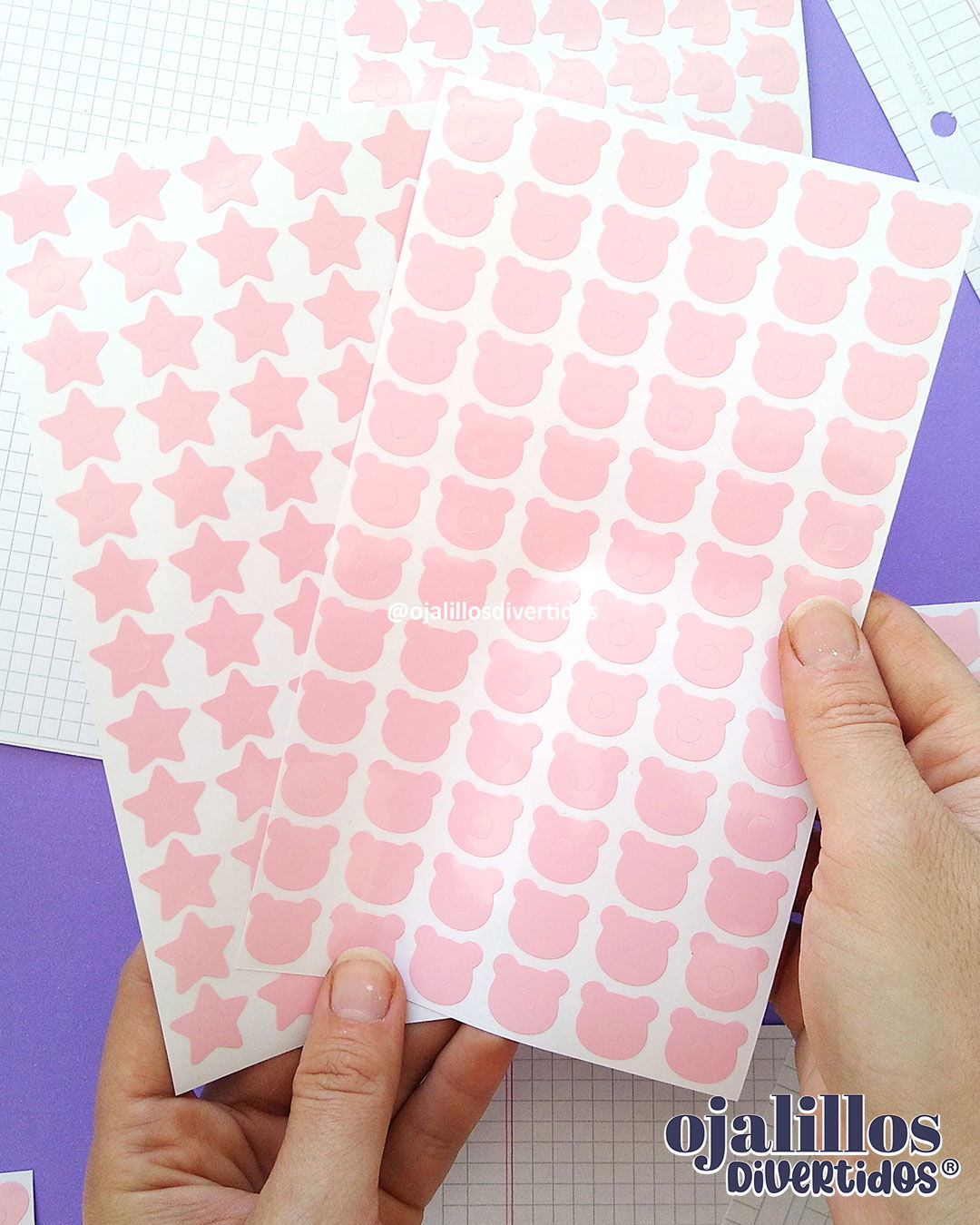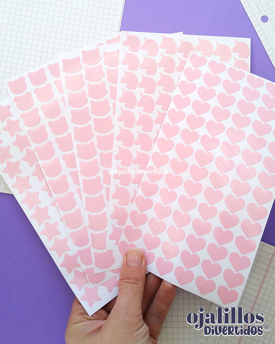 ¿Cuántos ojalillos trae cada planchita? / Amongus: 80 /  Blonda: 84 / Capibara: 54 / Círculo clásico: 104 / Círculo grande: 66 / Corazón: 84 (ó 98 dependiendo el lote) / Corona: 63 / Estrella: 84 / Flor: 84 / Frutilla: 70 / / Gatito: 72 / Manzana: 76 / Mariposa: 72 / Osito: 72 / Pajarito: 78 / Sirena: 72 / Tiktok: 73 / Unicornio: 77