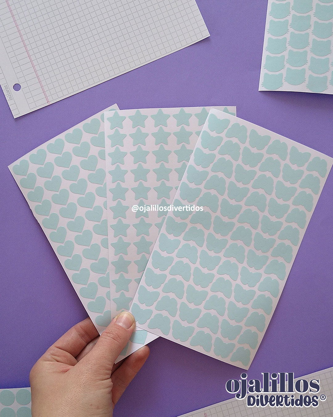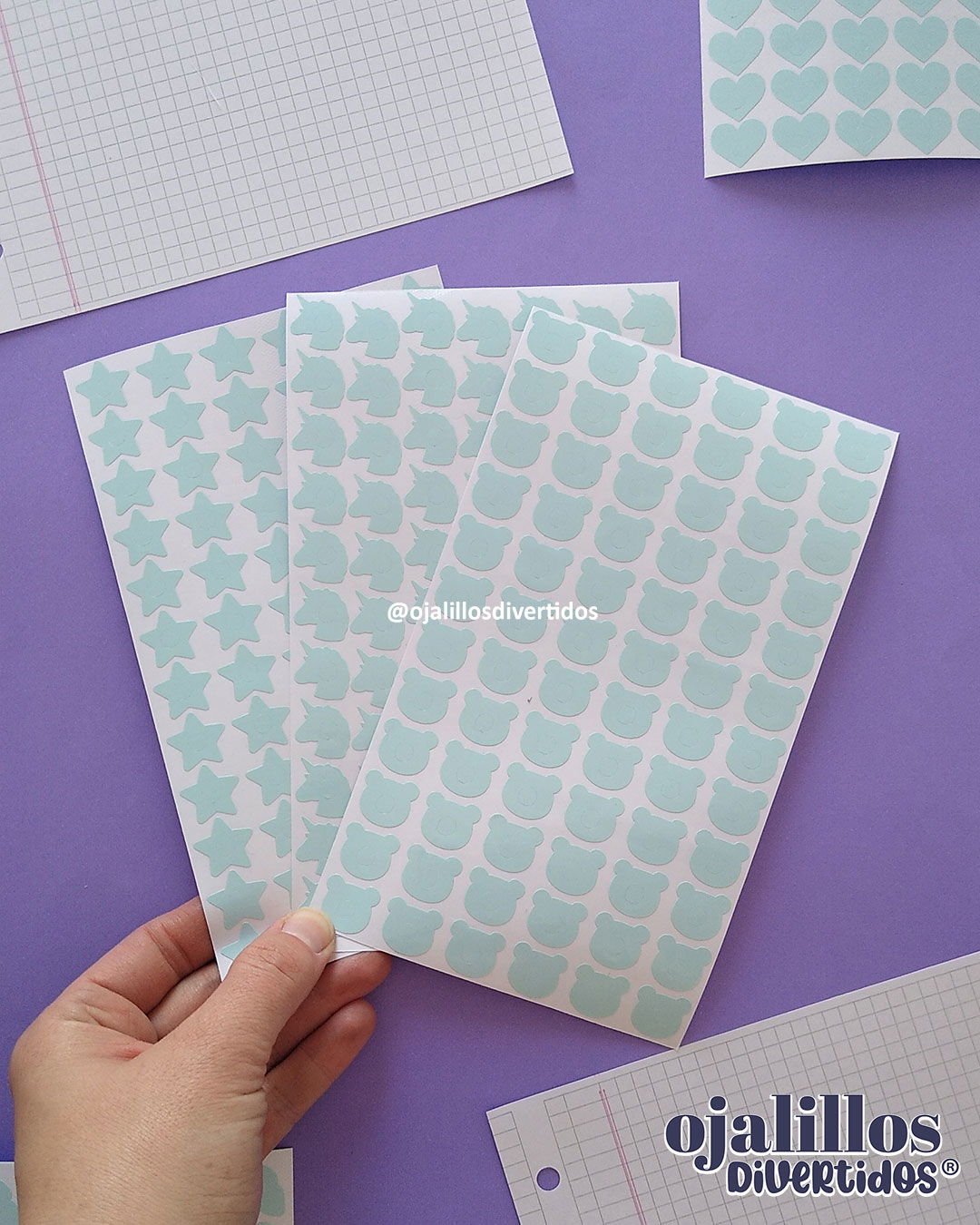 ¿Cuántos ojalillos trae cada planchita? / Amongus: 80 /  Blonda: 84 / Capibara: 54 / Círculo clásico: 104 / Círculo grande: 66 / Corazón: 84 (ó 98 dependiendo el lote) / Corona: 63 / Estrella: 84 / Flor: 84 / Frutilla: 70 / / Gatito: 72 / Manzana: 76 / Mariposa: 72 / Osito: 72 / Pajarito: 78 / Sirena: 72 / Tiktok: 73 / Unicornio: 77