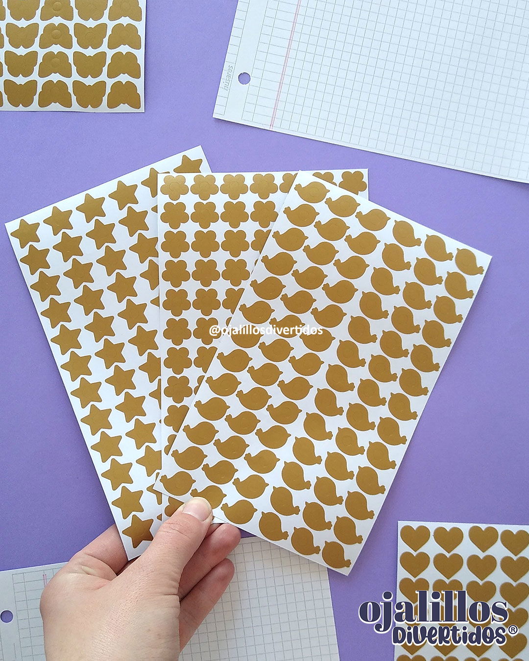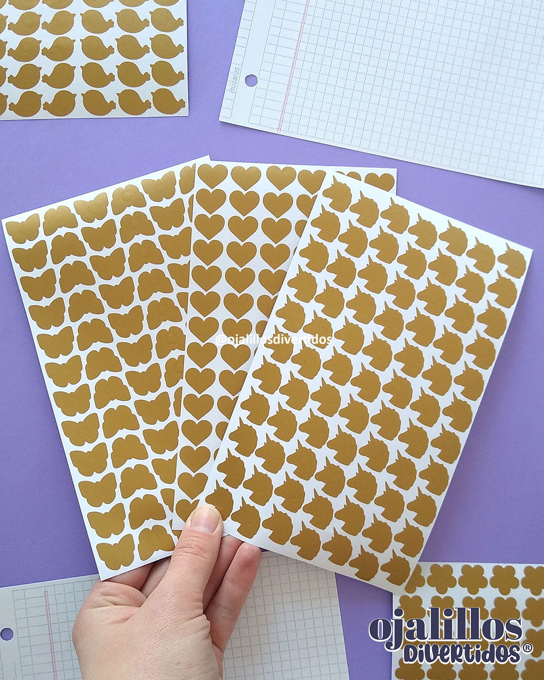 ¿Cuántos ojalillos trae cada planchita? / Amongus: 80 /  Blonda: 84 / Capibara: 54 / Círculo clásico: 104 / Círculo grande: 66 / Corazón: 84 (ó 98 dependiendo el lote) / Corona: 63 / Estrella: 84 / Flor: 84 / Frutilla: 70 / / Gatito: 72 / Manzana: 76 / Mariposa: 72 / Osito: 72 / Pajarito: 78 / Sirena: 72 / Tiktok: 73 / Unicornio: 77